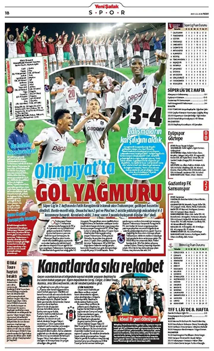 Süper Lig’in 7. haftasında Fatih Karagümrük’e konuk olan Trabzonspor, galibiyet hasretini dindirdi. Bordo-mavili ekip, Onuachu’nun 2 gol ve Pina’nın 2 asistle yıldızlaştığı mücadeleyi 4-3 kazanmayı başardı. Karadeniz ekibi, 3 maç sonra 3 puanla buluşarak düşüşe ‘dur’ dedi.